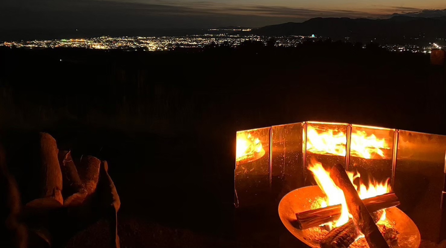 テント、寝袋、焚き火セット、